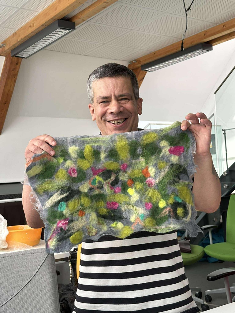W CKiE- Szkoła Łacińska w Malborku odbyły się warsztaty filcowania na mokro dla uczestników naszego domu. Podczas zajęć poznawaliśmy technikę pracy z
