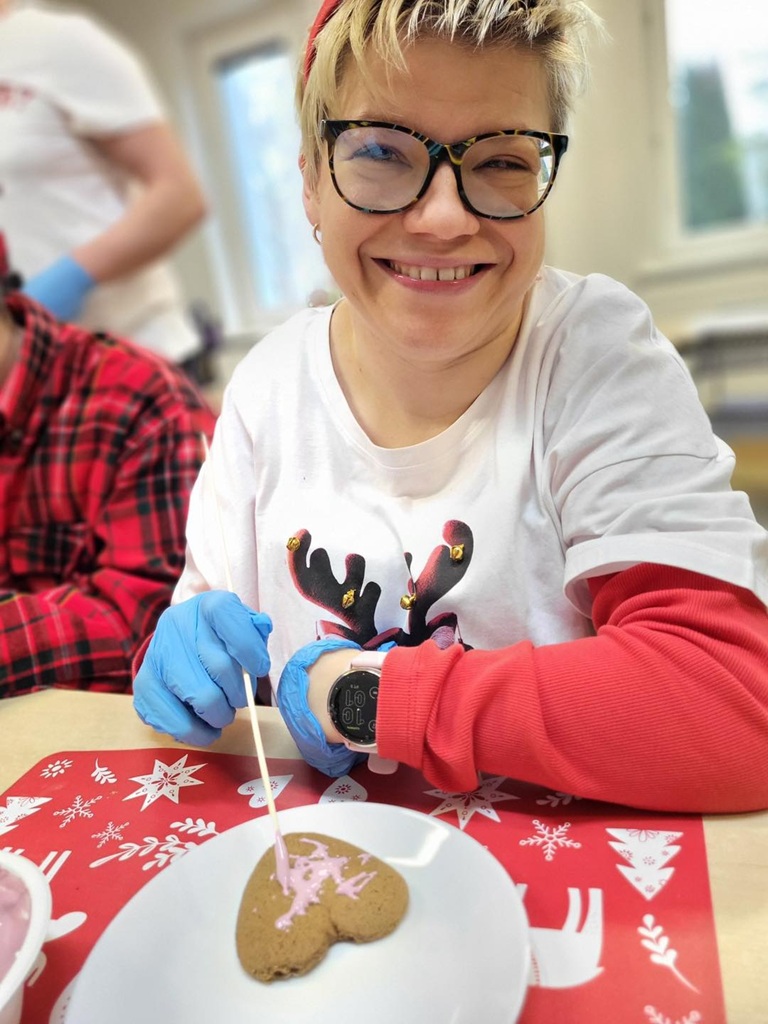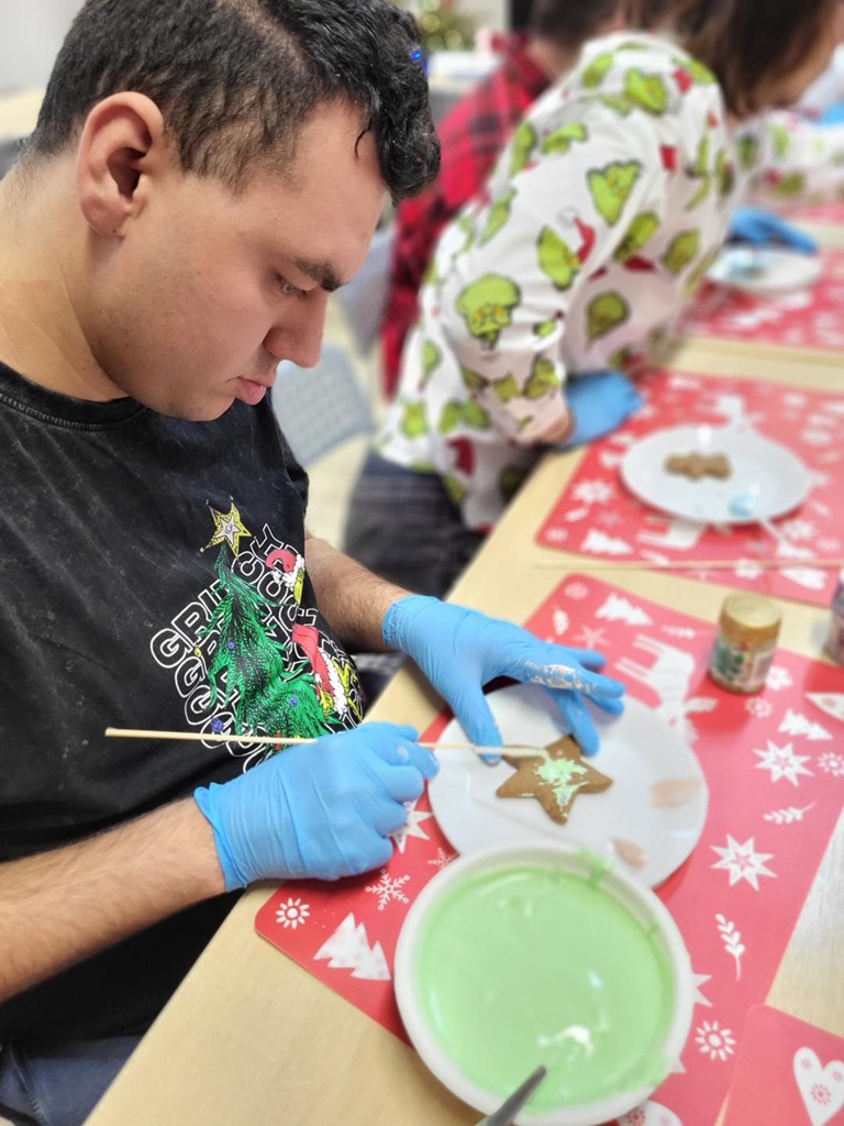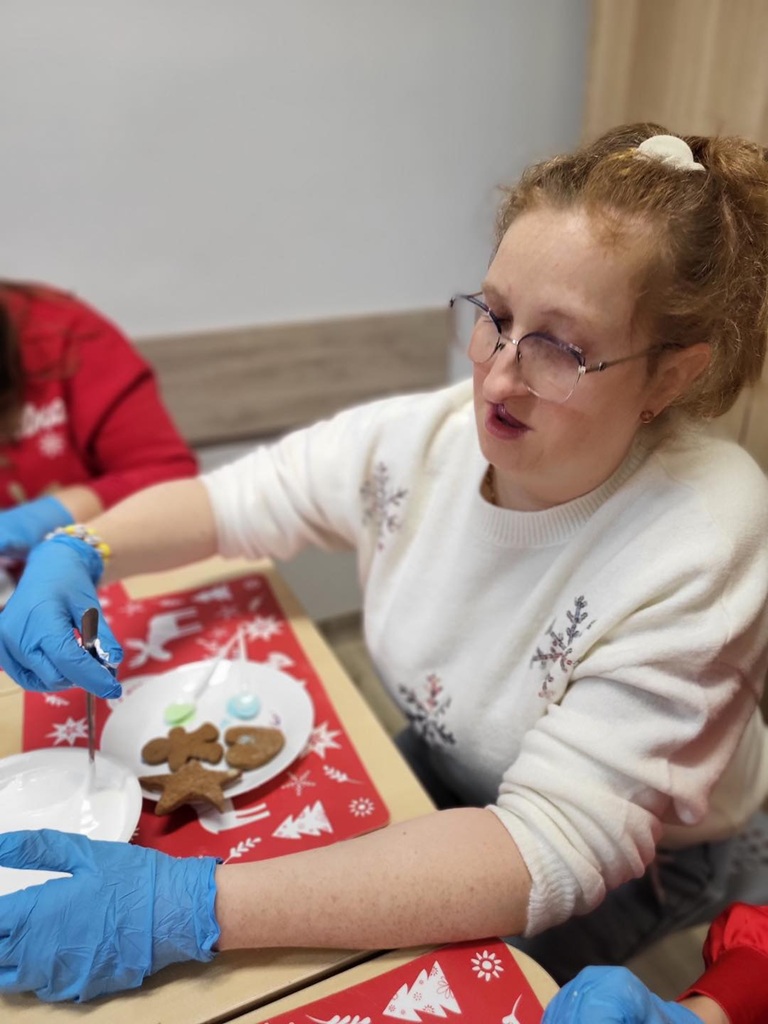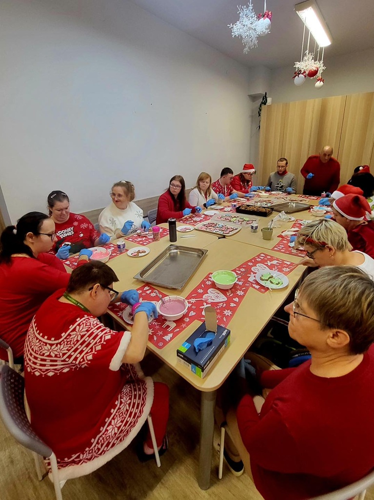 Zapach korzennych przypraw opanował Nasz Dom. Uczestnicy piekli bowiem pierniczki! A później działy się cuda, bo wszystkie ciasteczka przybrały przeróżne kolory, zabłysły posypkami… Uczestnicy wspólnie, jak co roku, stworzyli nie tylko piękne i smaczne pierniczki, ale i kolejne wspomnienia.
