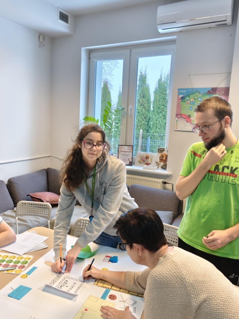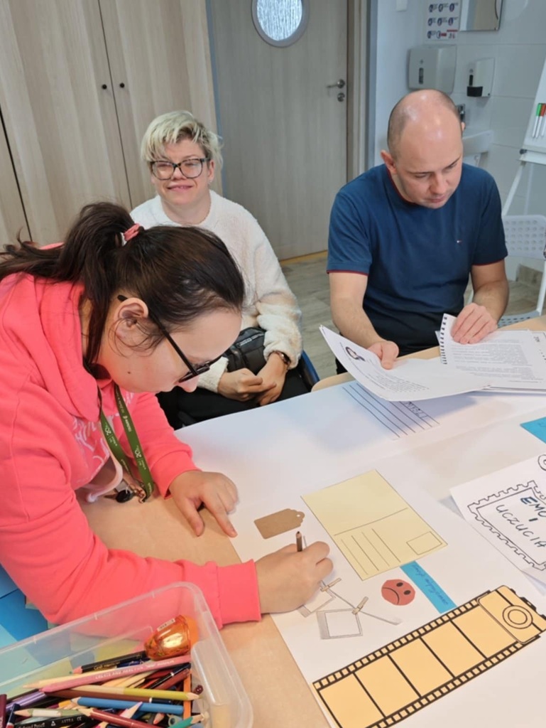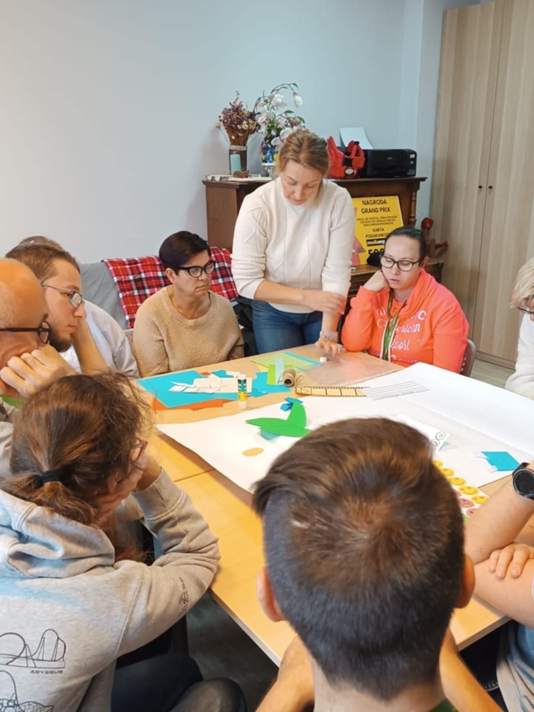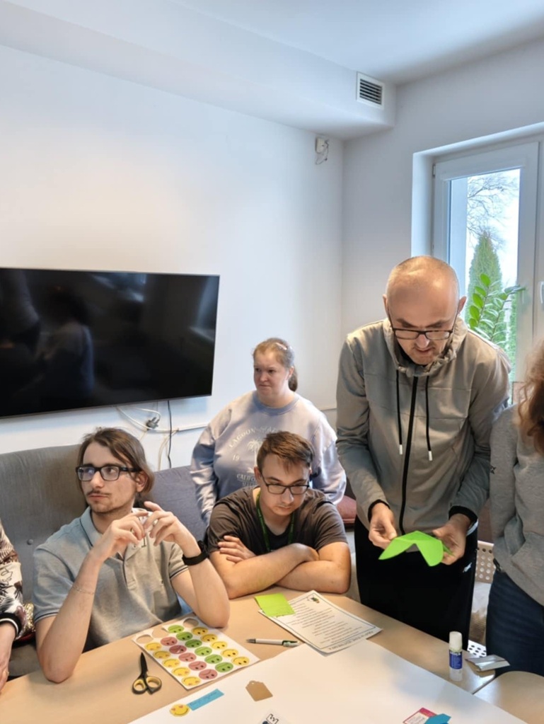 Na zajeciach z Treningu Umiejętności Społecznych jedna z grup wspólnie stworzyła Lapbook, który jest inspiracją do twórczego rozwoju. Celem bylo stworzenie interaktywnej, tematycznej książki, aby w sposób praktyczny i wizualny utrwalić umiejętności społeczne dotyczące tematu emocji, uczuć. Stworzony lapbook zawierał między innymi mapę myśli, kieszonki z definicjami,pytaniami, czy zadaniami.