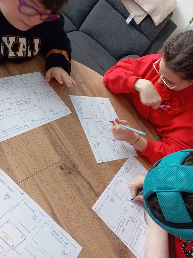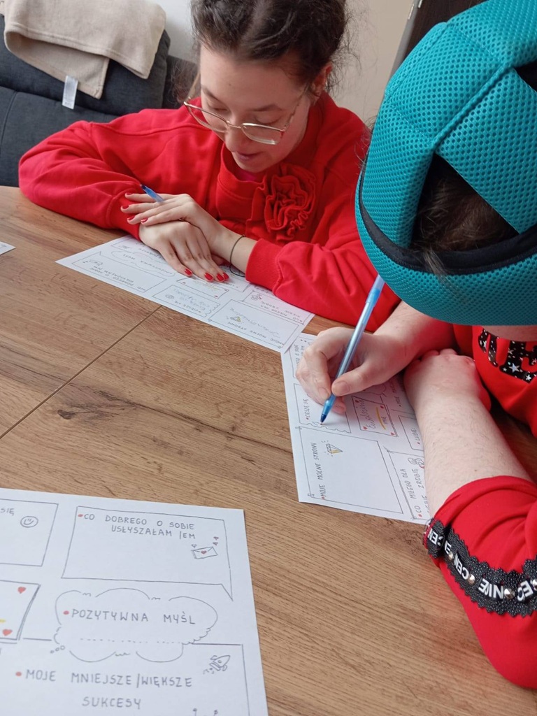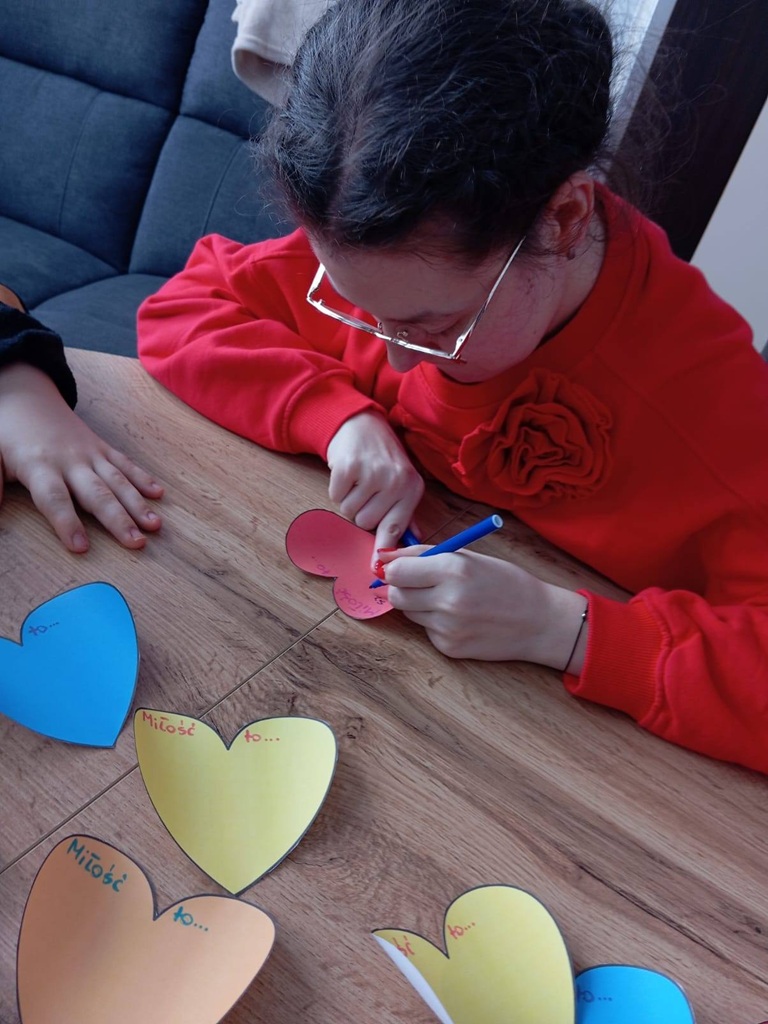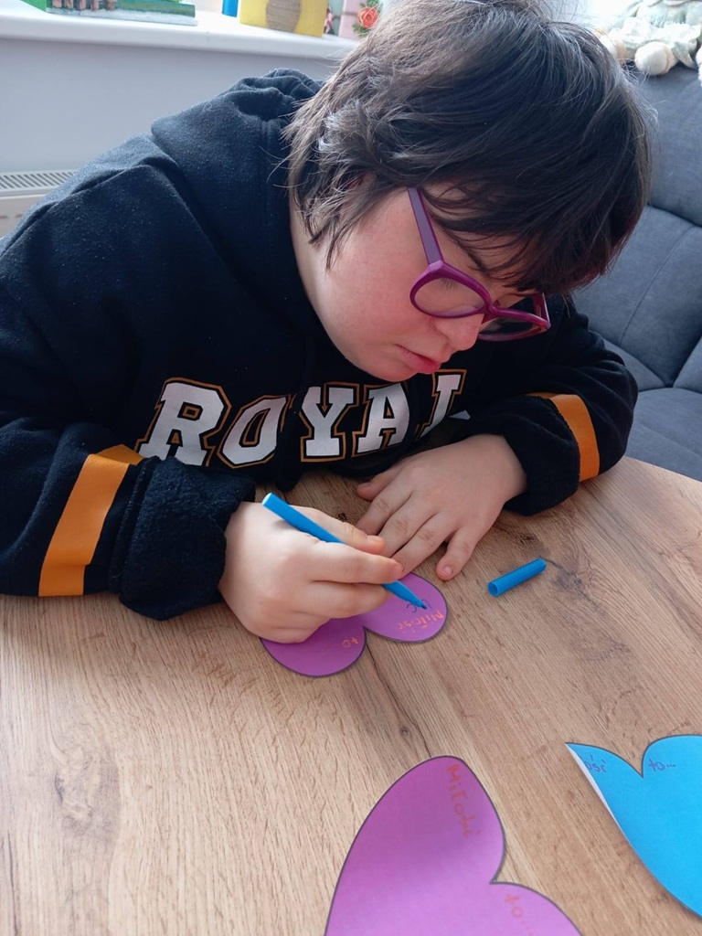 Uczestnicy podczas ostatnich zajęć TUS przeprowadzili dyskusję na temat tego czym jest uczucie miłości oraz jakie są sposoby okazywania miłości innym. Wykonali także specjalne walentynki. Zamiast klasycznej kartki walentynkowej dla kogoś stworzyli walentynkę dla siebie, wypisując na niej swoje pozytywne cechy, osiągnięcia i komplementy.
