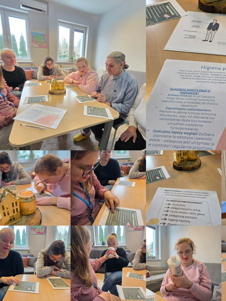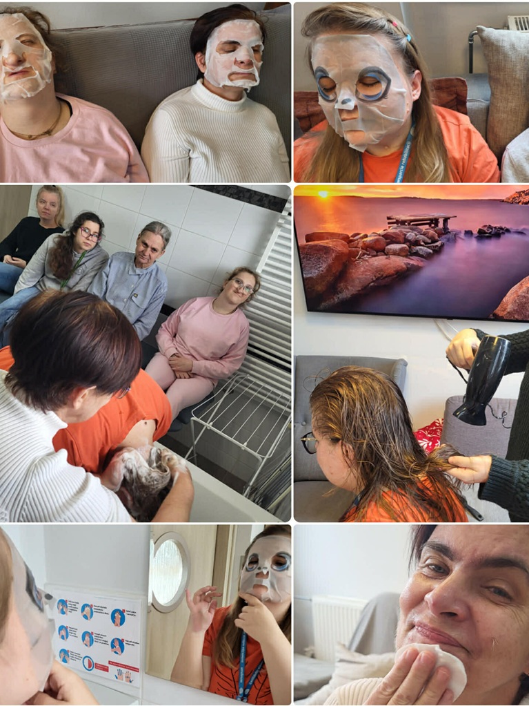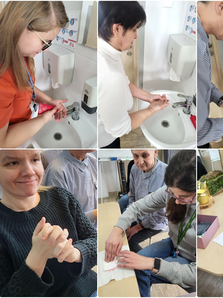 Podczas treningu dbania o wygląd zewnętrzny i higienę osobistą uczestniczki rozmawiały o tym, jak dbać o siebie na co dzień -o higienę, pielęgnację skóry i dłoni oraz świadome korzystanie z kosmetyków. Ważnym elementem zajęć była również pielęgnacja włosów – uczestniczki poznawały zasady ich mycia, suszenia i czesania, a także ćwiczyły różne upięcia na główce fryzjerskiej. Poruszono też temat odpowiedniego ubioru na różne okazje. Na zakończenie, przy kawie, Panie dzieliły się tym, co najbardziej podobało im się na zajęciach oraz co było dla nich najbardziej pomocne.