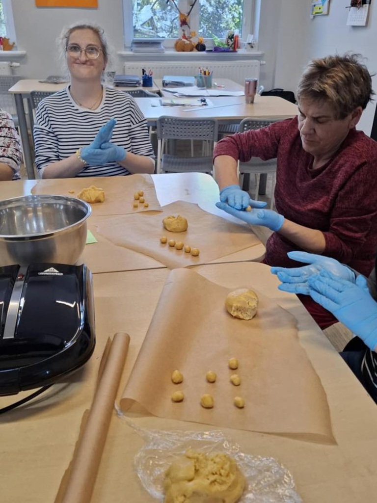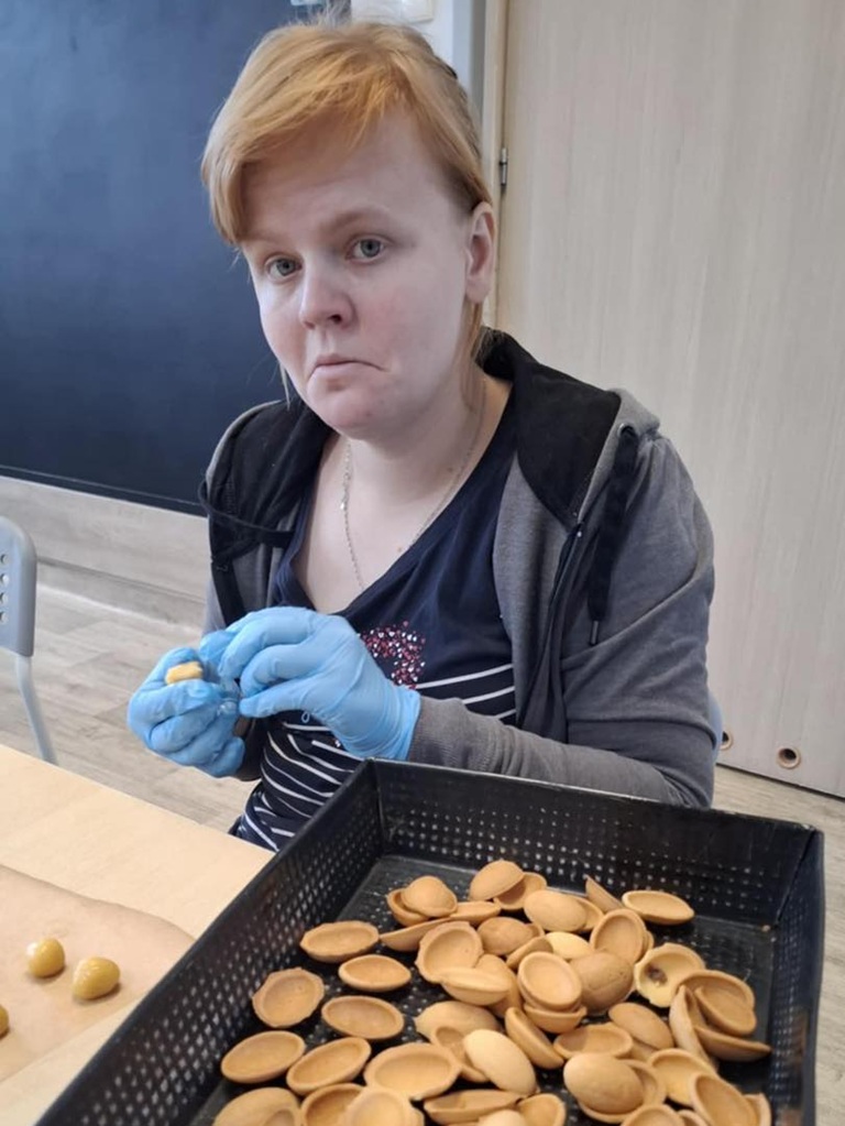 pyszne nadziewane ciasteczka, tematycznie nawiązujące do PRL-u. Uczestnicy przygotowali ciasto i upiekli skorupki, następnie dokładnie wypełnili je masą. Smakowite!