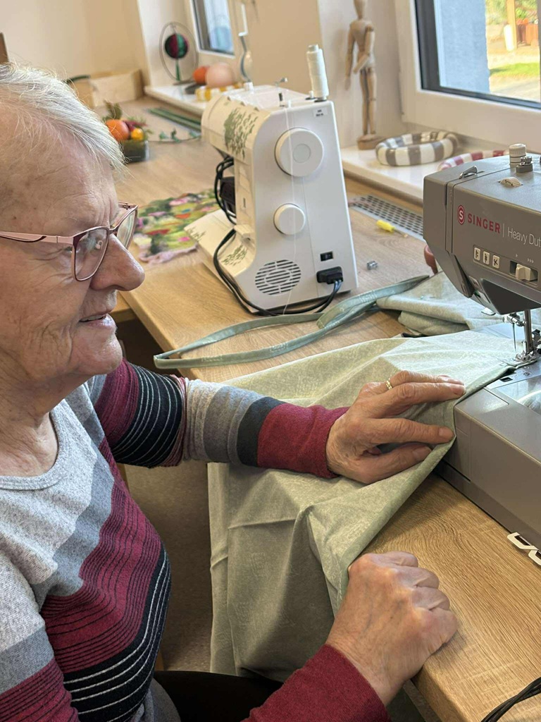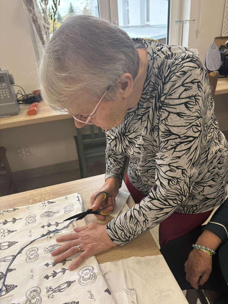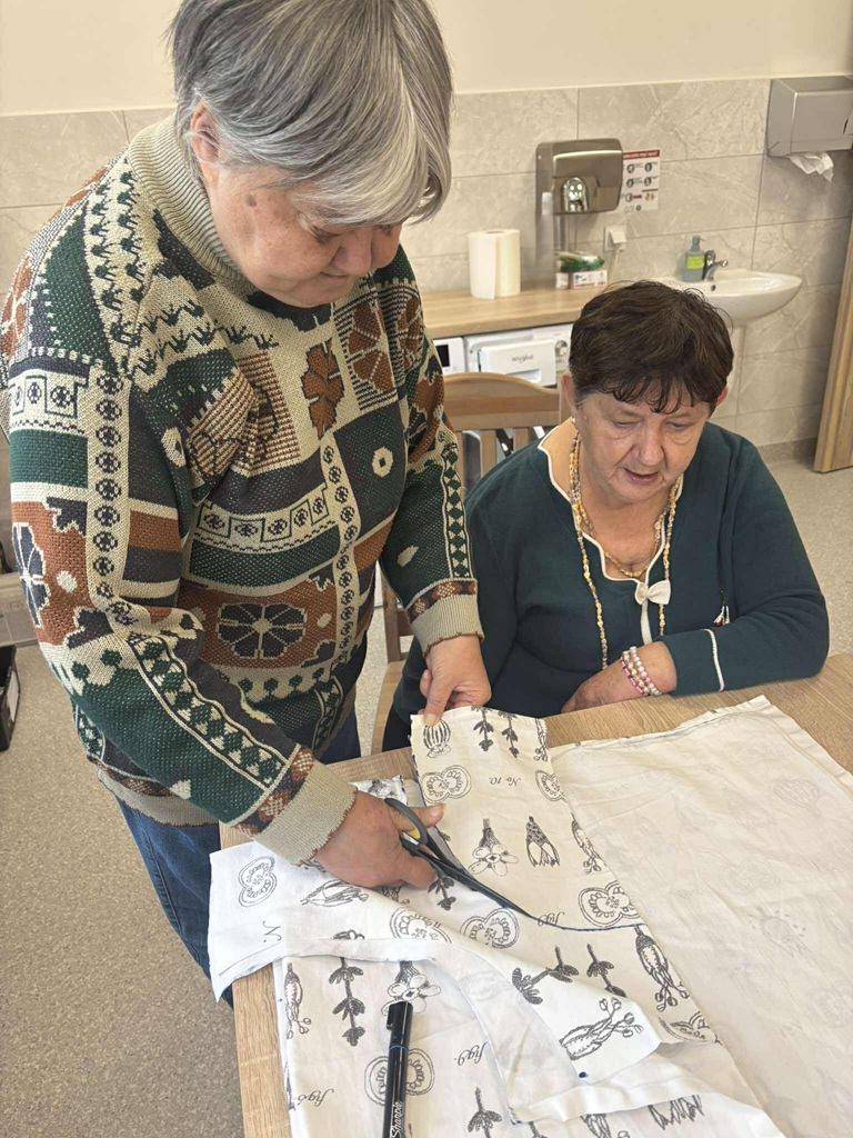 Podczas zajęć z krawiectwa Uczestnicy pod kierunkiem terapeuty, doskonalili swoje umiejętności szycia. Wspólnie wykonali praktyczne śliniaki oraz fartuchy, które zostaną wykorzystane podczas treningu kulinarnego. Zajęcia sprzyjały rozwijaniu zdolności manualnych, cierpliwości oraz współpracy w grupie.